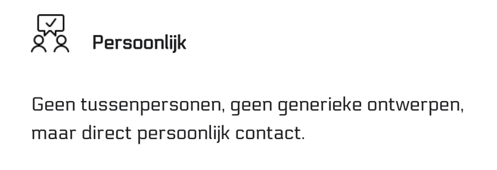 Geen tussenpersonen, geen generieke ontwerpen, maar direct persoonlijk contact.