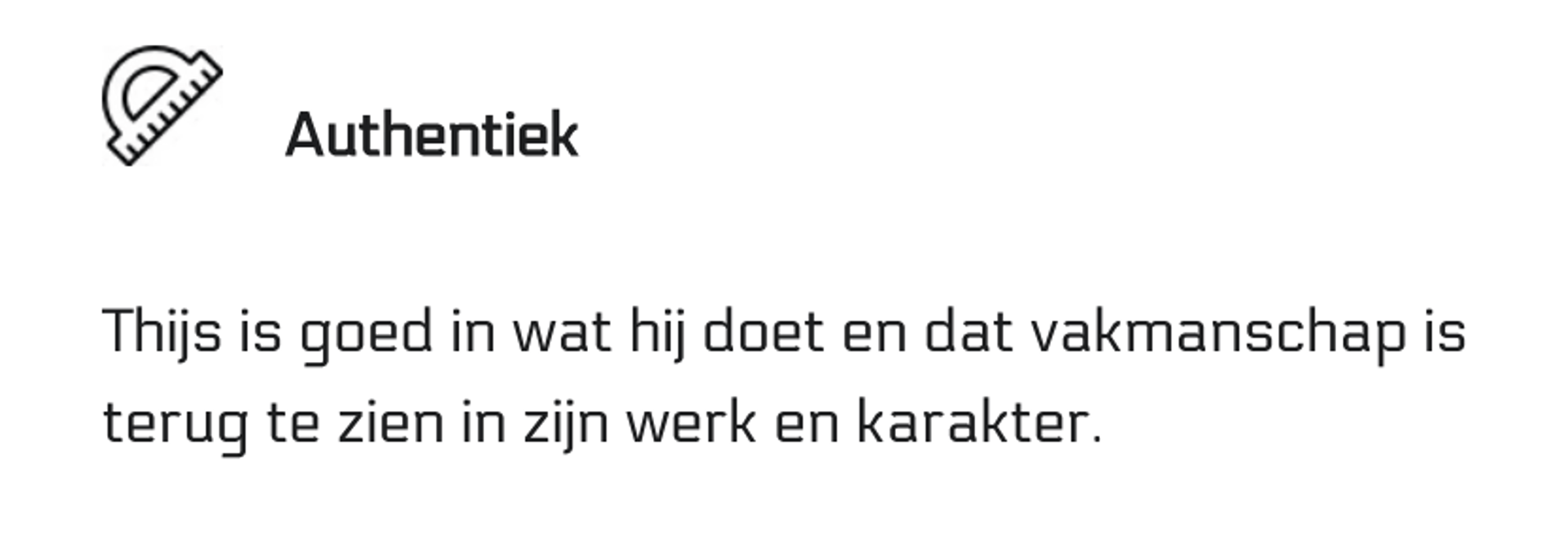 Thijs is goed in wat hij doet en dat vakmanschap is terug te zien in zijn werk en karakter.